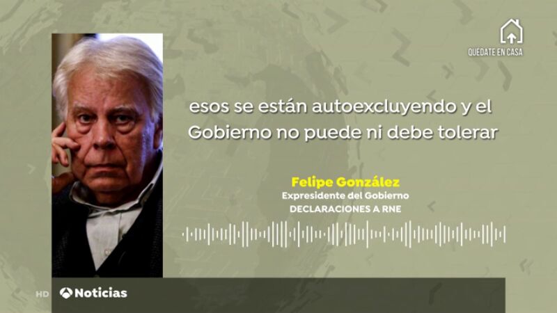 Felipe González, sobre la gestión de la crisis del coronavirus: "No se puede entrar en un diálogo con condiciones previas"
