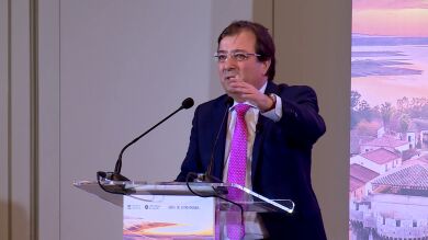 A juicio del presidente, Extremadura tiene "la tierra, el sol y ser la región de España con más hectómetros cúbicos de agua embalsada y con mayor seguridad ciudadana" a lo que ahora se le sumaría el litio y unas mejores comunicaciones.