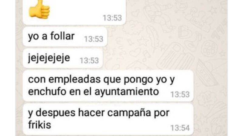 La Fiscalía ha archivado las diligencias abiertas a petición del Ayuntamiento de La Laguna (Tenerife) sobre el concejal que presumía por Whatsapp de "follarse" a las empleadas que había 'enchufado' en la corporación, Zebenzuí González (PSOE), al no apreciar delito en esas frases.