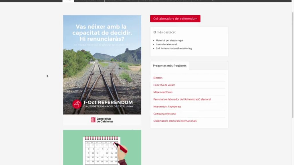 La juez del TSJC, que ha acordado estas actuaciones de oficio tras saber de la existencia de la nueva web por los medios de comunicación, ordena también a la Guardia Civil llevar a cabo "la interrupción cautelar del servicio y el bloqueo técnico correspondiente a la página mencionada". Las diligencias las ha acordado la juez en el marco de la causa que tiene abierta contra Puigdemont y el resto de miembros del gobierno catalán por los delitos de malversación, prevaricación y desobediencia, al convocar el referéndum suspendido por el Tribunal Constitucional.