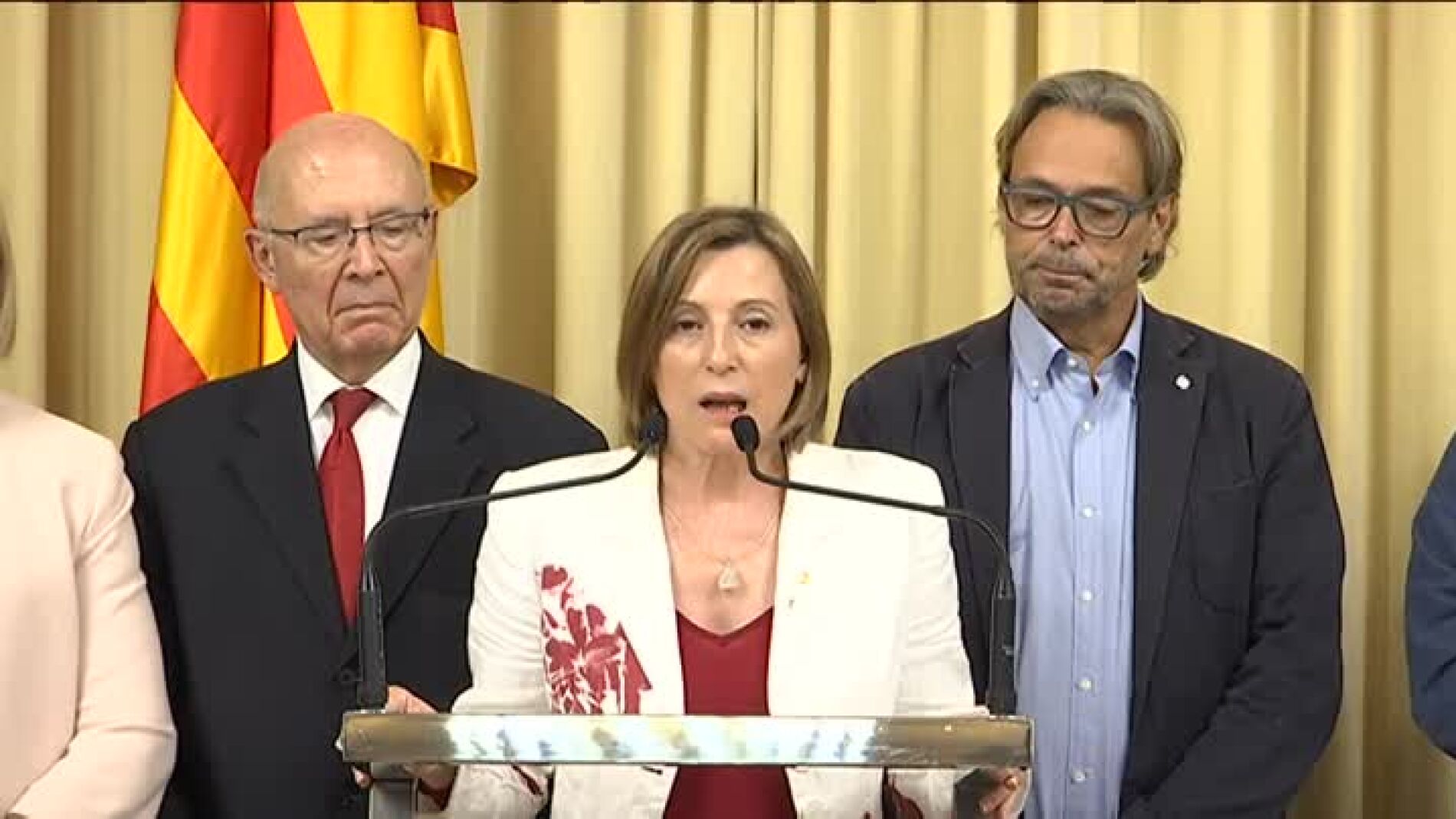 La presidenta del Parlamento de Cataluña, Carme Forcadell, ha comparecido para achacar al Gobierno ataques por el referéndum del 1-O, en referencia a las detenciones que se han producido en Cataluña este miércoles por la mañana.