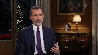 Por segundo año consecutivo, el Rey ha escogido este salón del Palacio de la Zarzuela, después de que en 2016 lo hiciera en su despacho, emplazamiento habitual de los mensajes de su padre, el rey emérito Juan Carlos I.