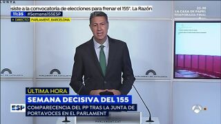 En este sentido, ha subrayado que el 155 permitirá afrontar las elecciones autonómicas con unas "mínimas condiciones de equilibrio y de respeto democrático". Por otro lado, ha advertido al Govern, a Junts pel Sí y a la CUP que si "tienen la tentación" de declarar unilateralmente la independencia en el pleno del próximo jueves, ni el grupo del PPC en la cámara catalana ni el Gobierno "lo permitiremos".