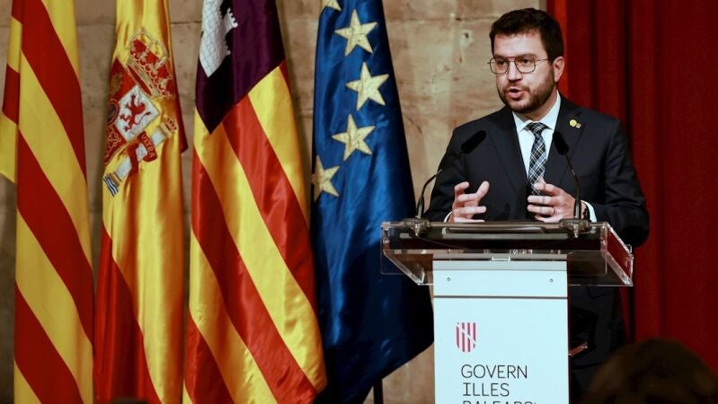 Desde Palma de Mallorca, el presidente catalán, Pere Aragonès, ha exigido al Gobierno central que defienda y proteja el catalán en Cataluña y ha aseverado: "El catalán en la escuela no se toca".