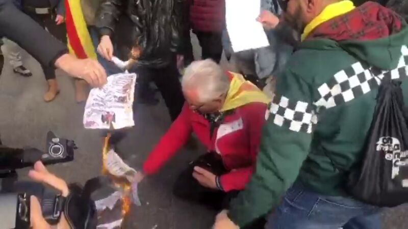 Graban al diputado de la CUP Carles Riera quemando la Constitución en las protestas de Barcelona