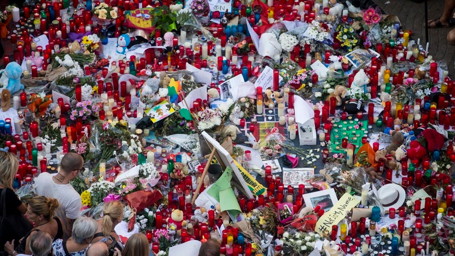 Muchas de las pancartas se han centrado en el rechazo a la violencia y al terrorismo, con lemas como "No a las guerras", y también se han podido ver numerosas camisetas con la palabra Barcelona, donde la "l" se ha cambiado por un crespón negro. "Estamos aquí para mostrar nuestro pésame a quienes han perdido a familiares o seres queridos, y también para demostrar que no tenemos miedo, que saldremos adelante y que no podrán con nosotros", ha explicado Montse, una de las manifestantes.