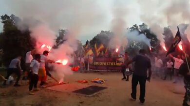 Tras una pancarta con el lema "Siempre unionistas", han exhibido banderas de España, algunas preconstitucionales o con simbología ultra, y han coreado lemas como "No nos engañan, Cataluña es España".