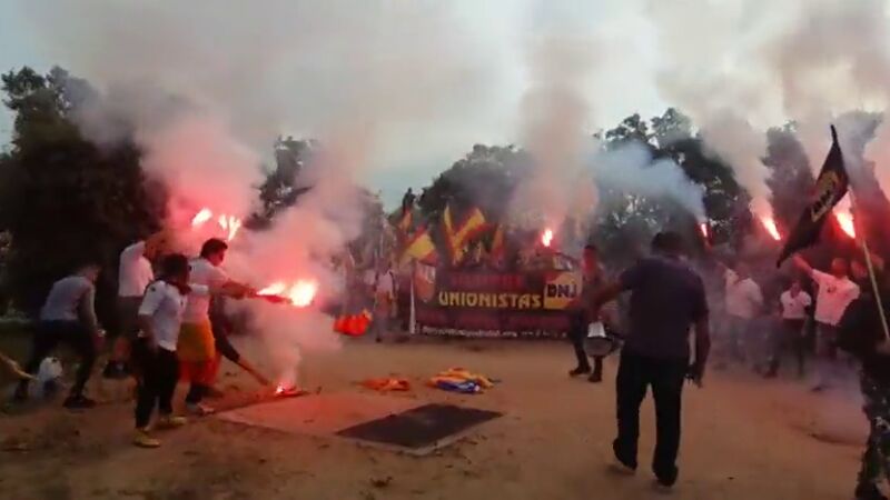 Tras una pancarta con el lema "Siempre unionistas", han exhibido banderas de España, algunas preconstitucionales o con simbología ultra, y han coreado lemas como "No nos engañan, Cataluña es España", "Patriotas de Blanquerna, absolución", "Puigdemont a la prisión" o "Rajoy traidor, defiende a tu nación".