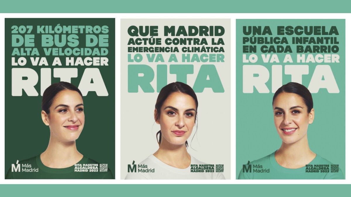 A través de las redes sociales ha dado a conocer su cartel de arranque de precampaña. Un tríptico en el que aparece ella en primer plano con las siguientes "plegarias": "207 kilómetros de bus de alta velocidad, lo va a hacer Rita"; "Que Madrid actúe contra la emergencia climática, lo va a hacer Rita"; "Una escuela pública infantil en cada barrio, lo va a hacer Rita".
