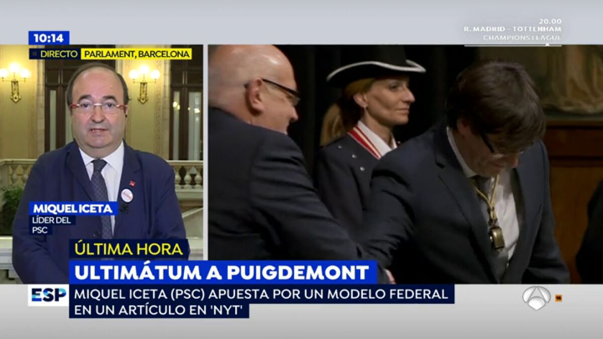 En una entrevista en Espejo Público, Iceta ha señalado que el presidente de la Generalitat, Carles Puigdemont, lo "tendría muy fácil" con contestar al requerimiento del Gobierno que "en el último pleno del Parlament no declaró la independencia y así el artículo 155 no tendría razón de ser". "Tiene que mantener la cohesión entre los independentistas y debe considerar que una rectificación rompería la mayoría independentista", ha indicado.