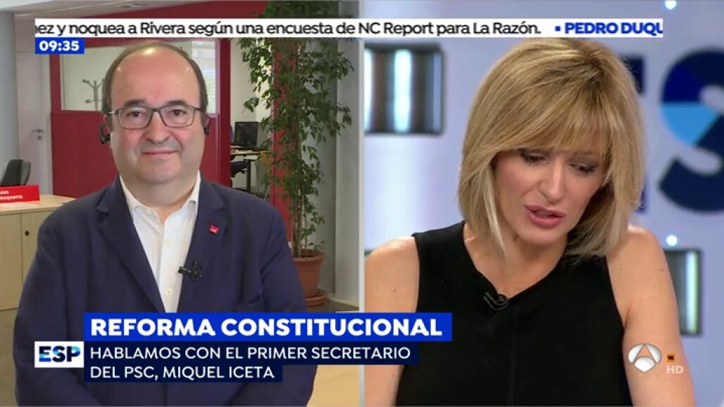 Respecto a las palabras de la ministra de Política Territorial sobre una reforma urgente de la Constitución, Iceta cree que es urgente aunque considera que no es viable en esta legislatura. Además señala que el PSOE lleva pidiendo esto desde el año 2013 y lamenta que hubiera un intento de una comisión para estudiar las necesidades de revisión del modelo territorial pero "hubo partidos que no quisieron participar en ella e incluso uno que la abandonó" y por eso pide a todo el mundo que participe.