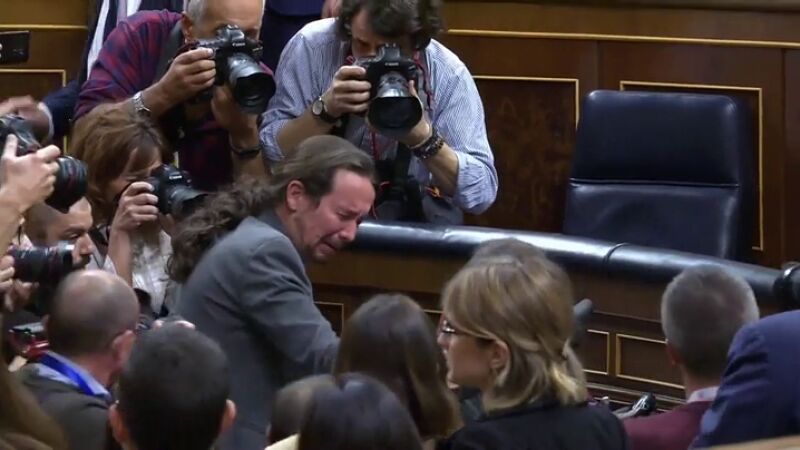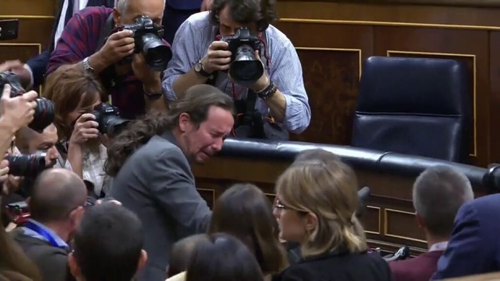 Las lágrimas de Pablo Iglesias tras la votación de investidura de Pedro Sánchez