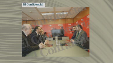 En el día que Víctor de Aldama declara ante el Tribunal Supremo, el diario 'El Confidencial' publica la imagen superior. Es el empresario junto a Ábalos en la zona noble de Ferraz. Esta fotografía que publica el medio es del 29 de marzo de 2019. Aldama medió para que los embajadores de Juan Guaidó se reunieran con Ábalos cuando era ministro.