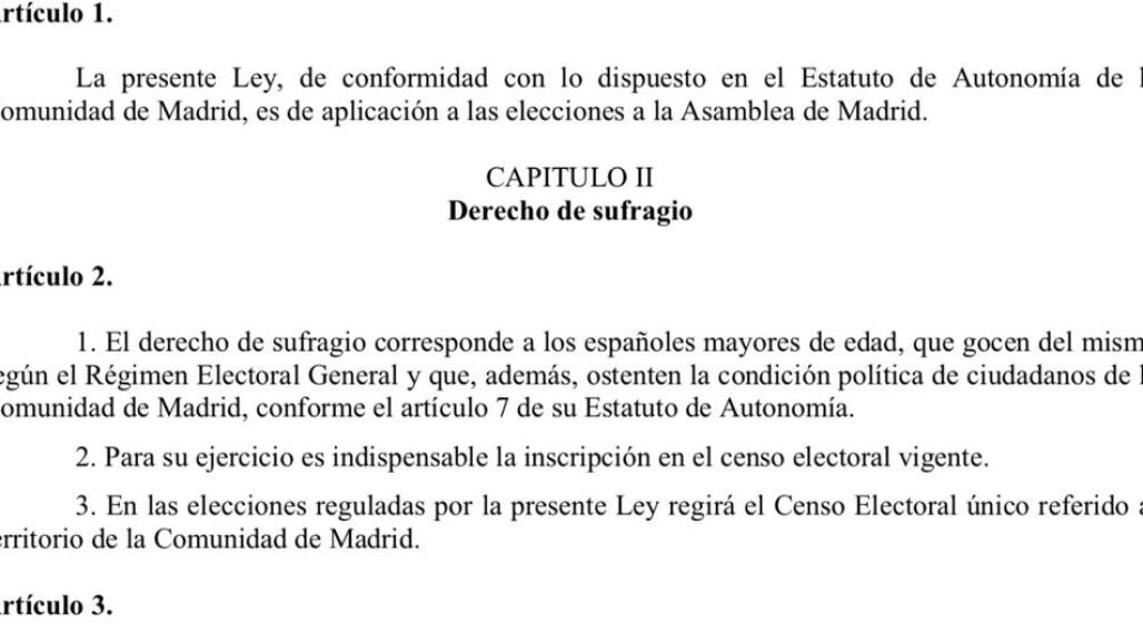 ¿Qué dice la Ley Electoral de Madrid?
