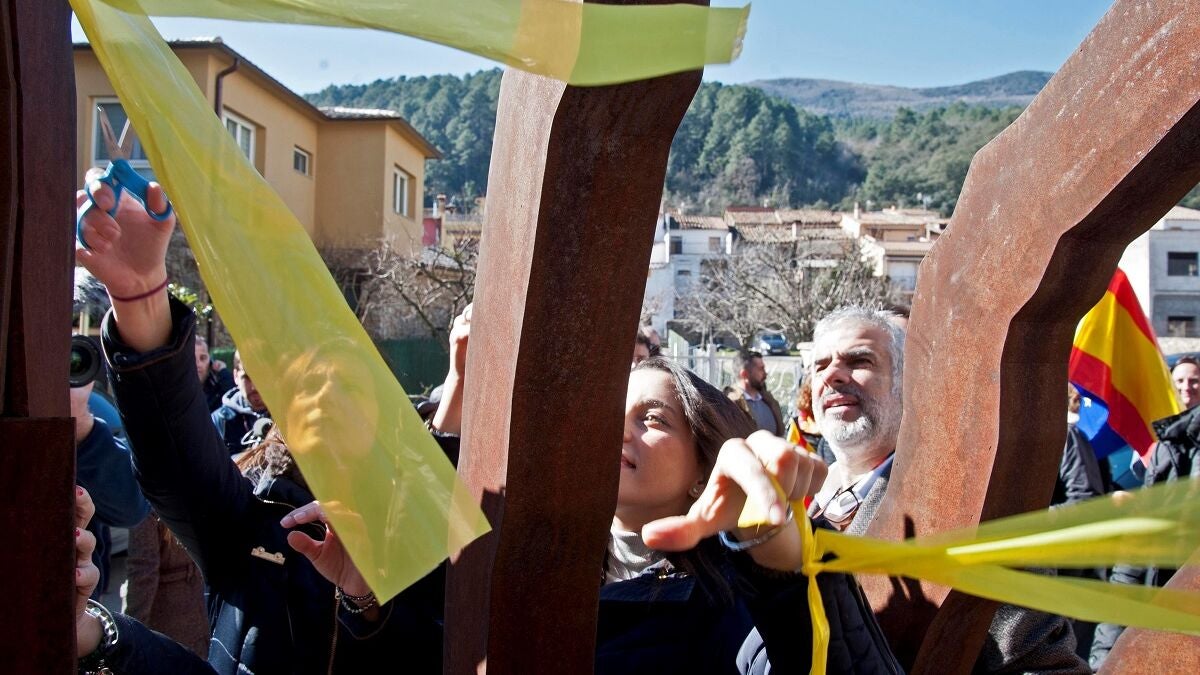 Increpan a Arrimadas y al equipo de Ciudadanos por retirar lazos amarillos en Amer (Girona), el pueblo natal de Puigdemont