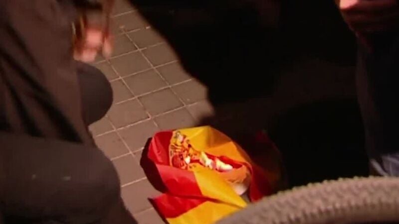Independentistas arrebatan una bandera de España a una simpatizante de Vox y la queman