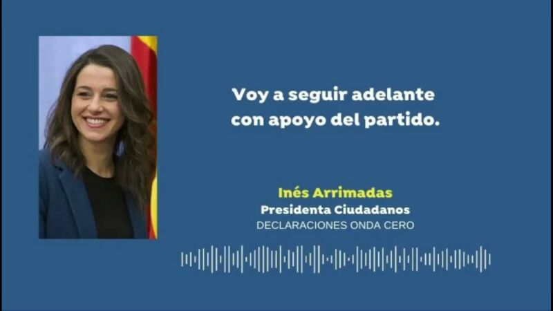 La líder de Ciudadanos, Inés Arrimadas, no se plantea su dimitir como ya hizo Albert Rivera en la anterior ocasión. En los resultados de las elecciones catalanas el partido de Ciudadanos ha bajado con respecto a las elecciones de 2017, cuando fue el partido ganador. Arrimadas tampoco se plantea cesar a nadie. "A veces las circunstancias no acompañan pero hay que seguir para adelante. No es un partido fácil, hace lo correcto. Con humildad, aprendiendo y mirando hacia adelante", ha asegurado la líder del Ciudadanos.