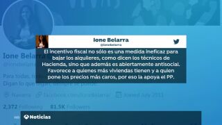 En un tuit, Belarra ha señalado que "el incentivo fiscal no sólo es una medida ineficaz para bajar los alquileres, como dicen los técnicos de Hacienda, sino que además es abiertamente antisocial" y ha añadido: "Favorece a quienes más viviendas tienen y a quien pone los precios más caros, por eso la apoya el PP".