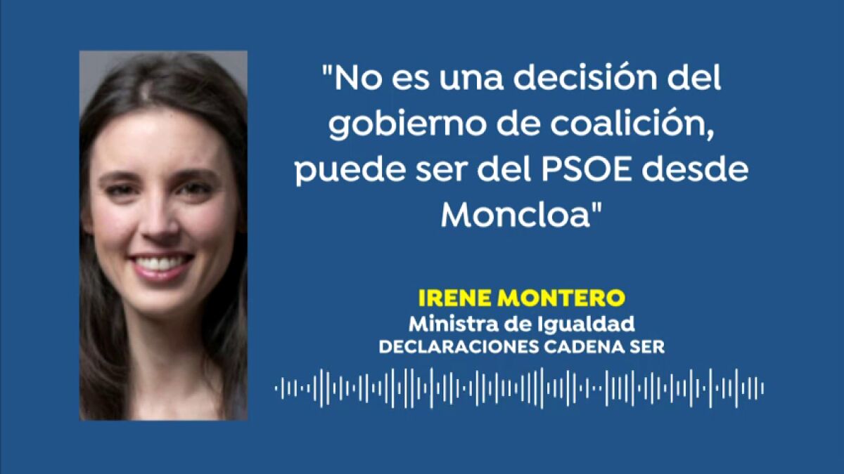 Además, apunta que la decisión "no la ha tomado" el gobierno de coalición, sino que en todo caso la ha tomado un partido político. "Desde luego no es una decisión que se haya tomado en el Gobierno, respeto las decisiones del PSOE pero no es una decisión que haya tomado el Gobierno de coalición", ha subrayado en una entrevista en la Cadena Ser.