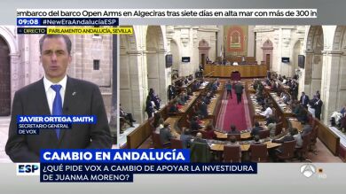 El secretario general de Vox, Javier Ortega Smith, asegura que su partido no tiene ninguna intención de participar en el Gobierno andaluz a pesar de que se les ha ofrecido. "Hemos venido para aplicar políticas de cambio real y nuestro papel como parlamentarios va a ser forzar ese cambio en esas políticas tan necesarias para Andalucía y el resto de España", asegura Ortega.