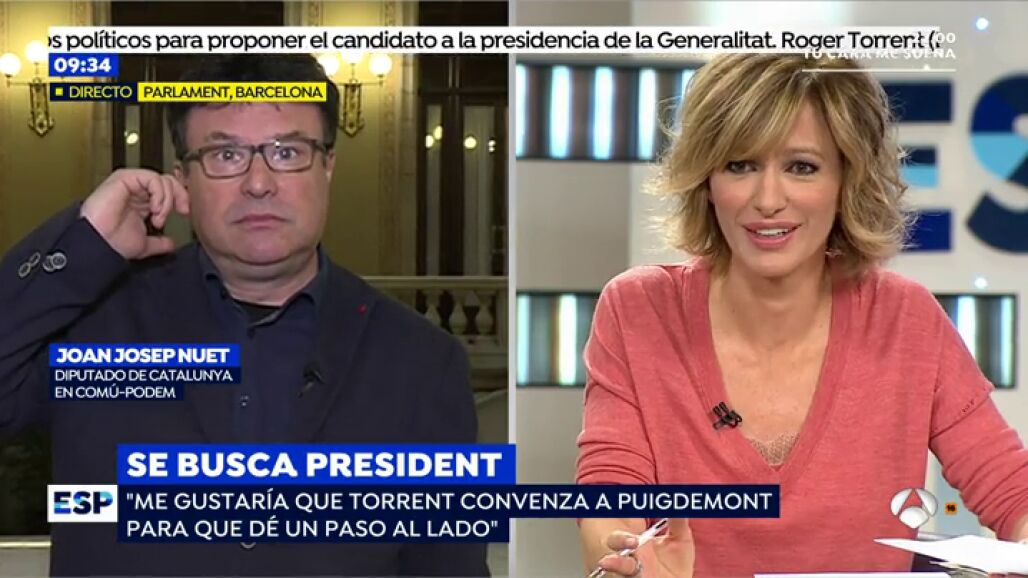 En una entrevista en Espejo Público, Nuet ha señalado que Catalunya en Comú-Podem tampoco defiende que Puigdemont sea investido: "Si estuviese presente votaríamos no y si está en Bruselas igual". "Necesitamos un presidente que esté aquí, que busque una relación institucional correcta con el gobierno de España", ha asegurado.
