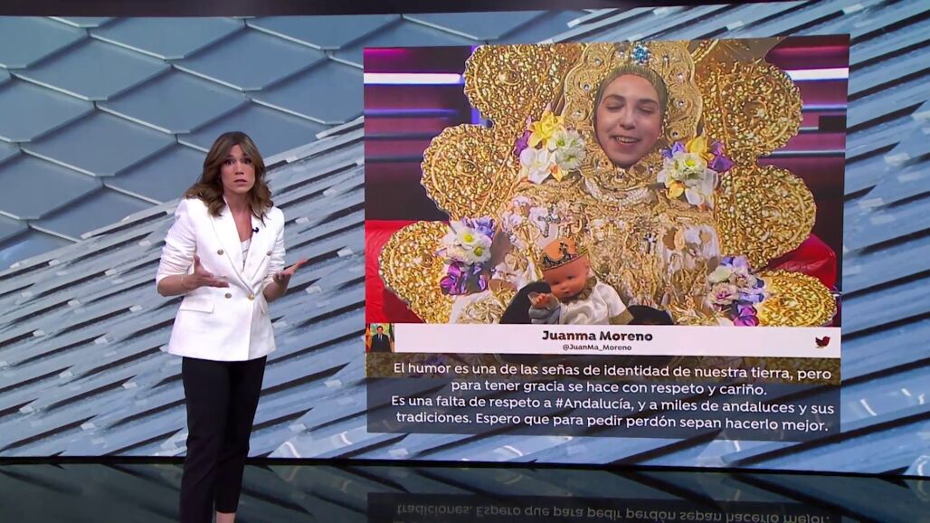 Las imágenes a las que se refiere Moreno se emitieron el pasado martes 4 de abril, en el programa 'Està passant' de TV3, dirigido por el humorista Toni Soler. Allí emitieron una parodia en forma de "entrevista" a la actriz Judit Martín, ataviada como la Virgen del Rocío, con muñeco en sus manos que simulaba ser el niño Jesús.