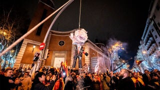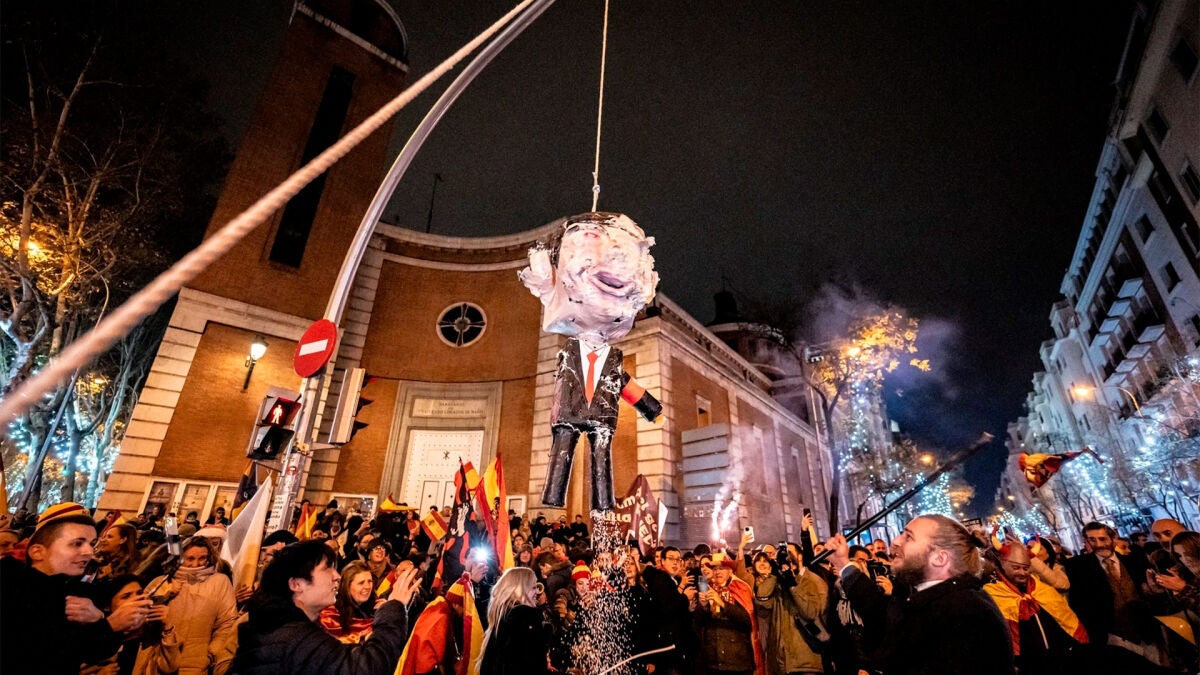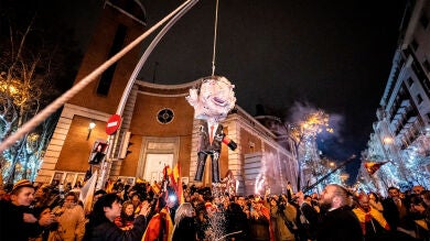 Una jueza rechaza que haya delito en el apaleamiento a un muñeco que representaba al presidente del Gobierno, Pedro Sánchez, durante la protesta organizada en Nochevieja frente a la sede del PSOE en Madrid. Asegura que, "lo más violento fue golpear a una piñata" que "en ningún caso" se parecía al presidente del Gobierno.
