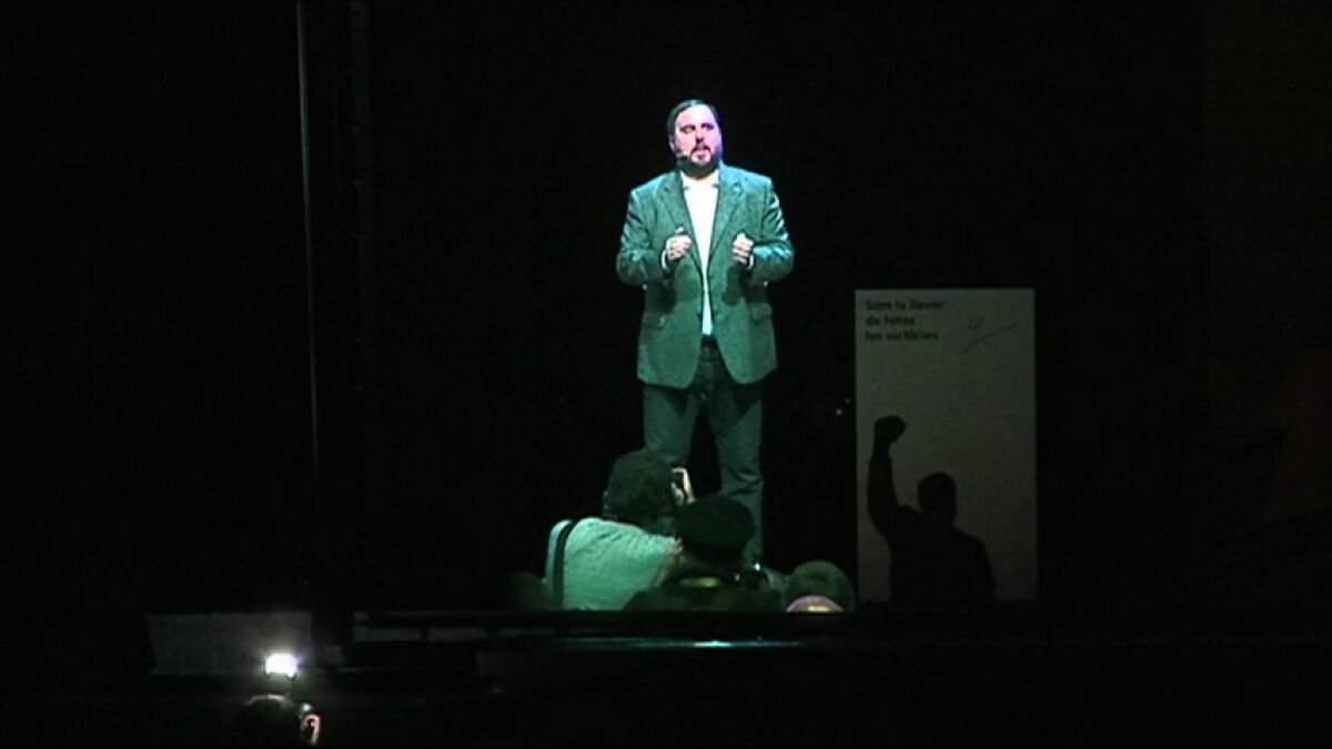 El líder de ERC y exvicepresidente de la Generalitat, Oriol Junqueras, ha iniciado la campaña de su partido ante el próximo juicio contra los dirigentes independentistas. Y lo ha hecho desde la cárcel, participando en un mitin a través de un holograma.