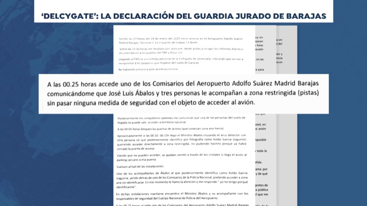 Antena 3 Noticias ha tenido acceso a la declaración ante notario de un vigilante de Barajas. Fue testigo de lo que pasó la noche del 20 de enero cuando aterrizó el avión privado en el que viajaba la vicepresidenta de Venezuela Delcy Rodríguez y el ministro de Transportes José Luis Ábalos.