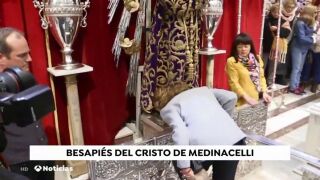 La infanta Elena cumple la tradición de venerar al Cristo de Medinacelli