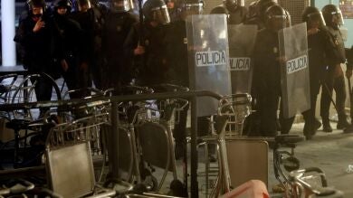 Los concentrados han vaciado extintores contra los agentes de la Policía Nacional y de los Mossos d'Esquadra y han lanzado también todo tipo de objetos contra ellos, que han respondido con cargas a estos ataques.