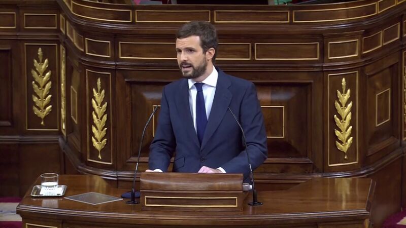 Las principales frases del discurso del presidente del Partido Popular, Pablo Casado, en la moción de censura de Vox contra Pedro Sánchez.