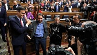 Pedro Sánchez ha agradecido el apoyo y la abstención de Unidas Podemos y de ERC, dos grupos señalados durante la campaña electoral como socios imposibles.