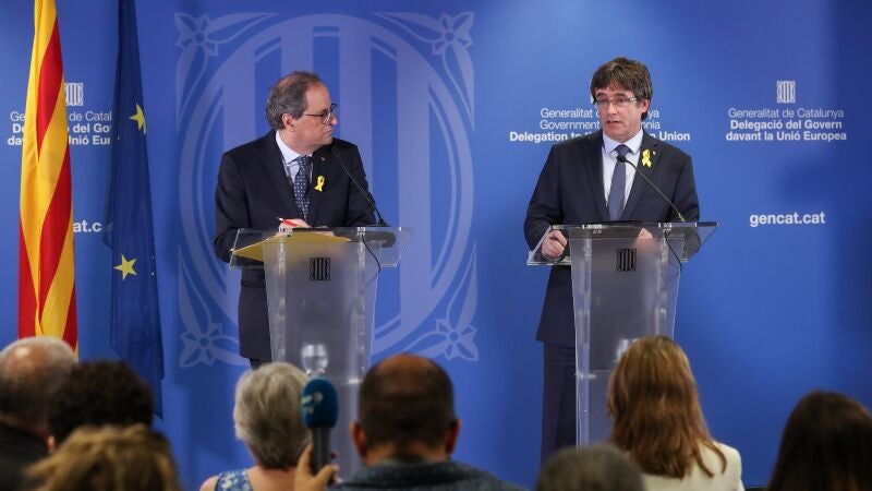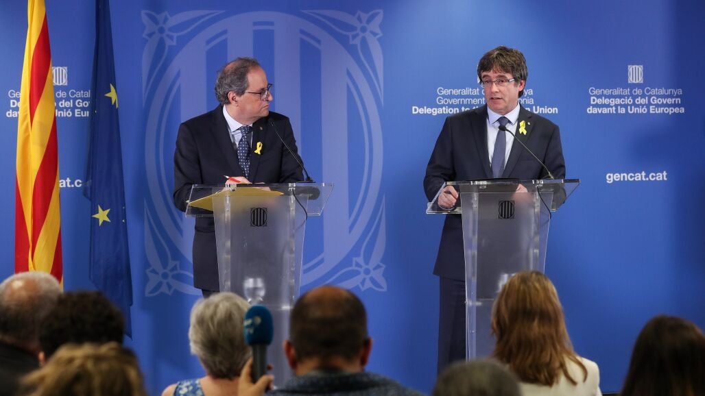 Puigdemont ha comparecido junto al actual presidente de la Generalitat, Quim Torra, así como con el resto de exconsellers huidos y algunos nuevos miembros de la Generalitat, como Laura Borràs, Jordi Puigneró y Maria Àngels Chacón.