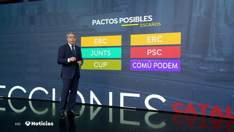Con este escenario hay varias opciones de pactos posibles, aunque no todas son igual de probables. La que más opciones tiene es la reedición de un gobierno independentista, esta vez liderado por Pere Aragonès, de Esquerra, y con consejeros de Junts. La Cup podría estar dentro del Govern o apoyarlo desde fuera. A Esquerra le gustaría que también Podemos participara del acuerdo, aunque no es fácil que Podemos y JuntsxCat levanten sus vetos cruzados.