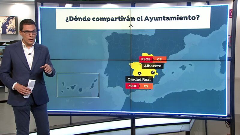 El PSOE y Ciudadanos han cerrado un pacto en Castilla-La Mancha para gobernar en los ayuntamientos de Albacete, Ciudad Real y Guadalajara y en una veintena de localidades de las provincias de Albacete, Ciudad Real, Toledo y Guadalajara. El acuerdo establece que ambos partidos se repartirán los cuatro años de mandato en los consistorios de Albacete y Ciudad Real, comenzando el candidato de Cs. La misma fórmula, aunque a la inversa, se seguirá en Ciudad Real.