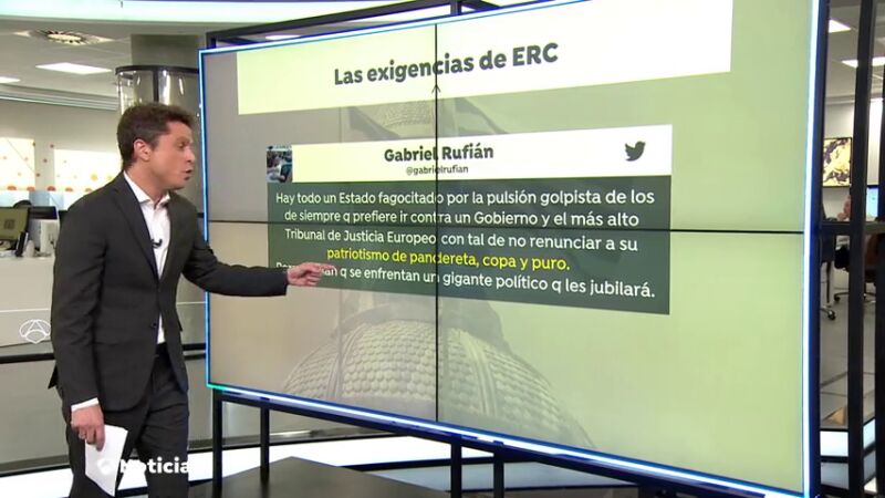 Por su parte, el líder de ERC en el Congreso, Gabriel Rufián, ha denunciado que hay "un Estado fagocitado por la pulsión golpista de los de siempre que prefiere ir contra un Gobierno y el más alto Tribunal de Justicia Europeo con tal de no renunciar a su patriotismo de pandereta, copa y puro". Pero Rufián les ha advertido de que se enfrentan a "un gigante político que les jubilará". La consellera de Justicia, Ester Capella, también ha calificado de "escándalo" la decisión del TS, al que ha advertido de que tiene un conflicto con el TJUE y con el Parlamento Europeo.