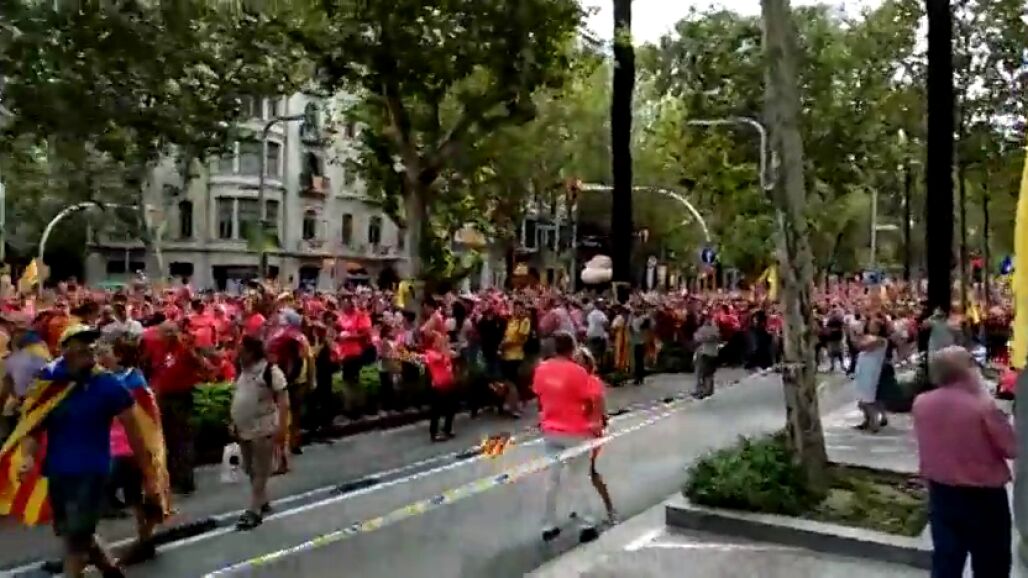 Vecinos de la Diagonal de Barcelona interrumpieron los minutos de silencio que se estaban produciendo en la manifestación independentista por la Diada haciendo sonar el himno de España. Los manifestantes, asombrados, no dudaron en abuchear a quienes hacían sonar la melodía y lanzaron gritos de 'libertad' o 'independencia'.