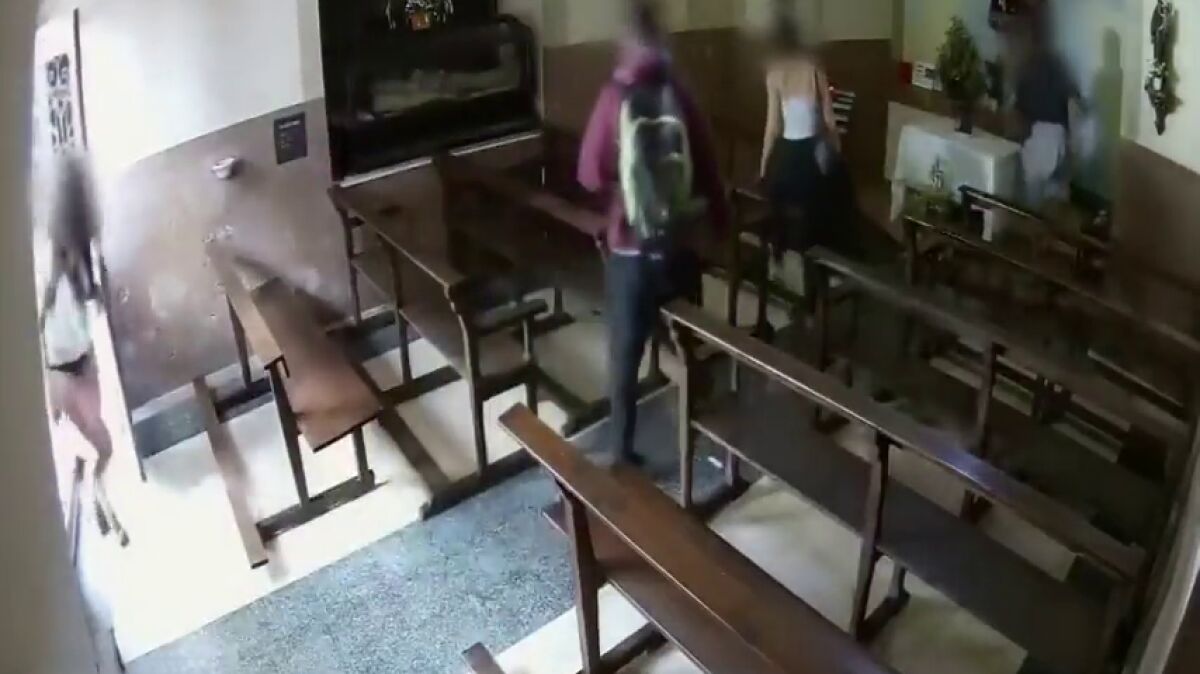 En el vídeo se ve como uno de ellos coge en brazos la figura del Cristo mientras bromea y otra de ellas roba una vela.