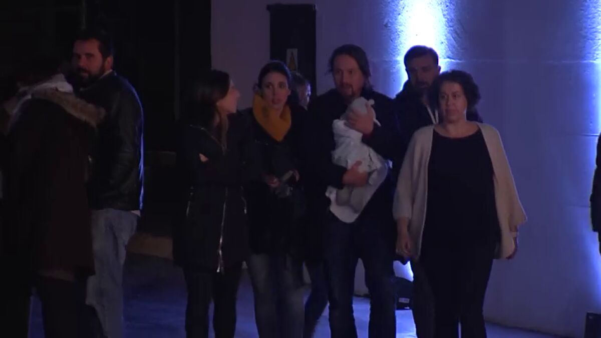 - Pablo Iglesias ha llegado acompañado de Irene Montero y sus hijos, en brazos