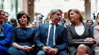 Sobre estos sondeos han versado los pocos 'corrillos' que se han formado en la Real Casa de Correos entre periodistas y políticos, algunos de los cuales han abandonado pronto la recepción, como la vicepresidenta del Gobierno, Soraya Sáenz de Santamaría; la secretaria general del PP, María Dolores de Cospedal, o el líder del PSOE, Pedro Sánchez.