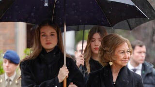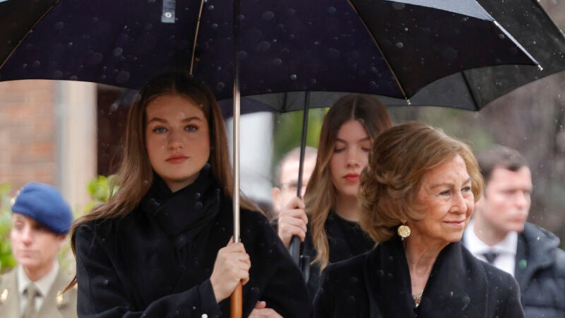 La familia real ha acompañado hoy a la reina Sofía en la capilla ardiente y la misa en Madrid; el lunes ha tenido lugar el adiós en Atenas, con Leonor y Sofía presentes