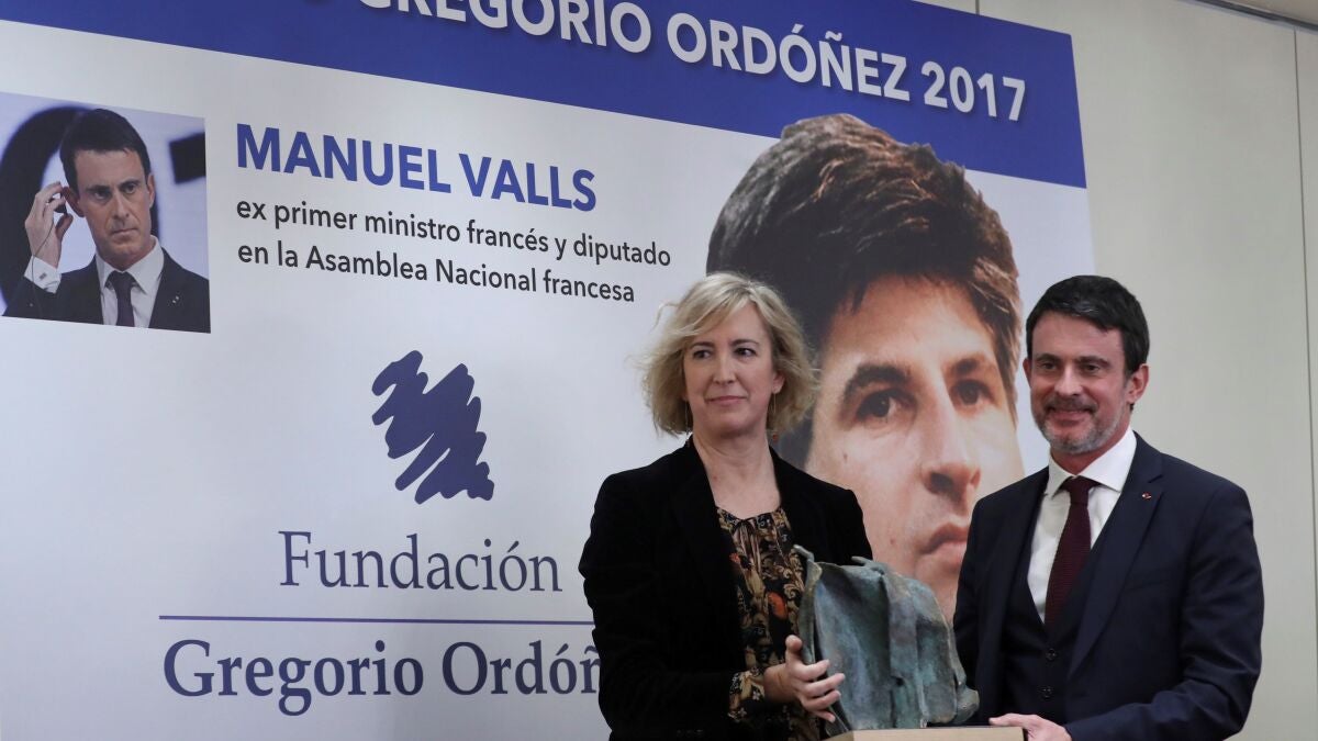 Valls ha hecho esta reflexión durante el discurso que ha pronunciado en San Sebastián tras recibir el premio Gregorio Ordóñez 2017 de manos de Ana Iríbar, viuda del concejal donostiarra del PP asesinado por ETA en 1995 y presidenta de la fundación que lleva el nombre de su marido, en un acto celebrado en un céntrico hotel de la capital guipuzcoana.