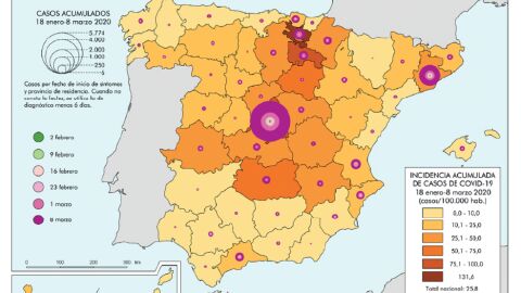 Sin embargo, este coronavirus, muchísimo más potente, llegaba dispuesto a arrasar con todo. Ahora, un informe realizado por el Instituto Geográfico Nacional data con más precisión la evolución de la pandemia en España. Cuando llegaron los primeros contagios a nuestro país, la existencia de mascarillas estaba casi agotada, y ese pudo ser uno de los desencadenantes en las siguientes semanas antes de que la OMS declarase al coronavirus como pandemia, y el Gobierno de España decretase el confinamiento obligatorio de la población.