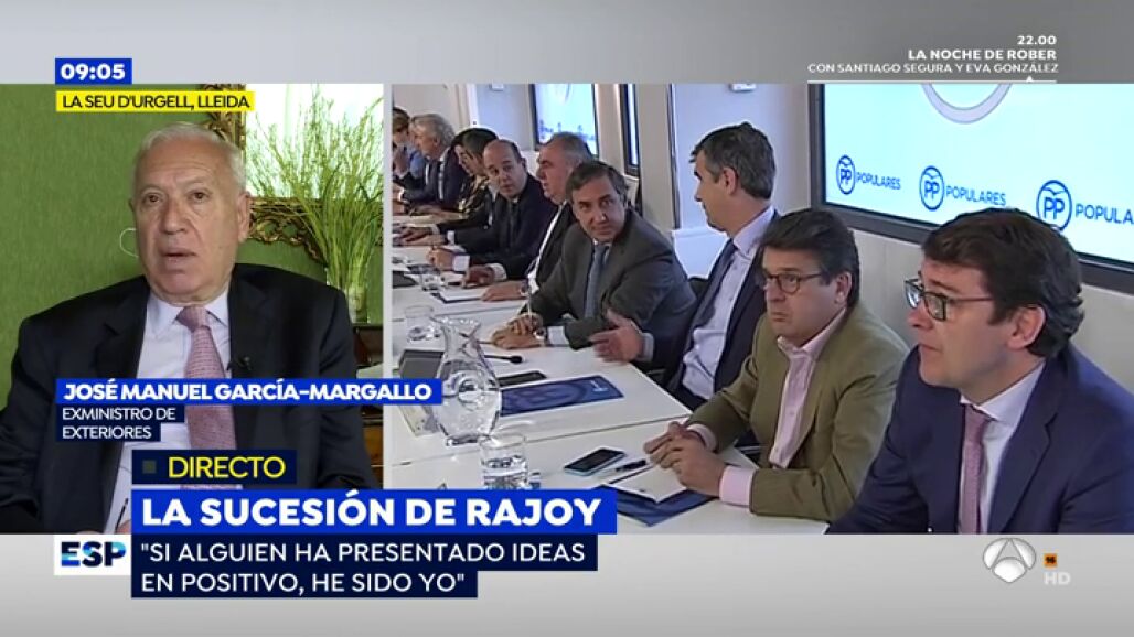 José Manuel García Margallo ha asegurado en Espejo Público que esta candidatura no pretende frenar las intenciones de la exvicepresidenta Soraya Sáenz de Santamaría y mantiene que con ella ha tenido "confrontación de proyectos, para nada confrontaciones personales". Preguntado por la intención del ministro del Interior de retirar las concertinas el político popular ha asegurado que "si se quitan las concertinas es obvio que tendrán que establecer mecanismos alternativos para evitar una avalancha".