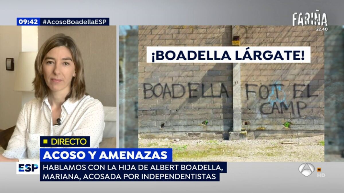 Mariana, la hija del dramaturgo Albert Boadella, ha explicado en Espejo Público cómo se sintió tras regresar a su pueblo de Girona, Jafre, y ver una pintada en la que rezaba: 'Boadella fot el camp' (Boadella lárgate).
