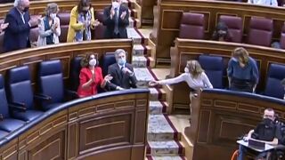 Durante el debate en el Congreso de los Diputados, han saltado chispas entre Fernando Grande-Marlaska, ministro del Interior, yRaquel Sánchez, Ministra de Transportes, Movilidad y Agenda Urbana. Marlaska, tras terminar su discurso, daba la mano en señal de respeto a los de su alrededor, cuando de repente la ministra Raquel Sánchez le ofrecía la mano y Marlaska se la negaba ignorándola.