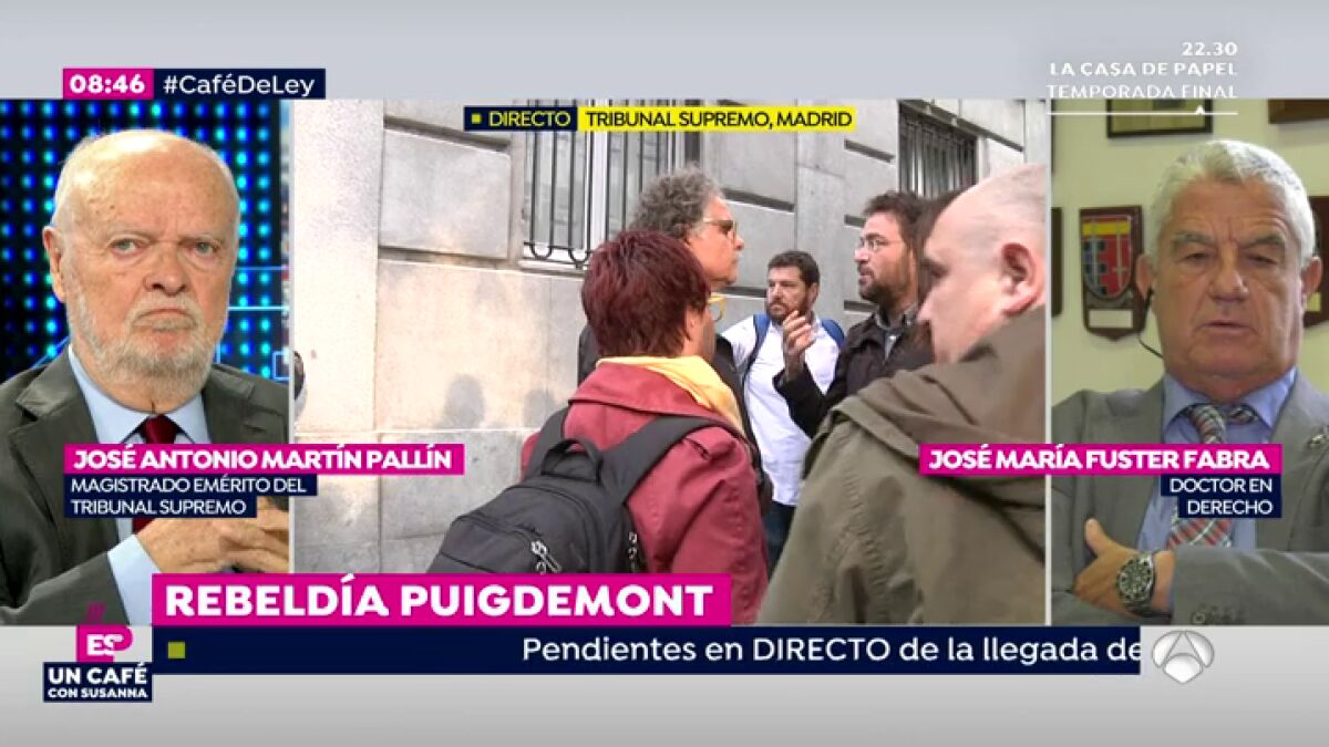 José Antonio Martín Pallín, exfiscal del Tribunal Supremo y magistrado emérito del mismo, y José María Fuster Fabra, doctor en derecho, han hablado en 'Espejo Público' sobre que pasaría con Puigdemont y los exconsellers que no acudirán a la Audiencia Nacional este jueves.