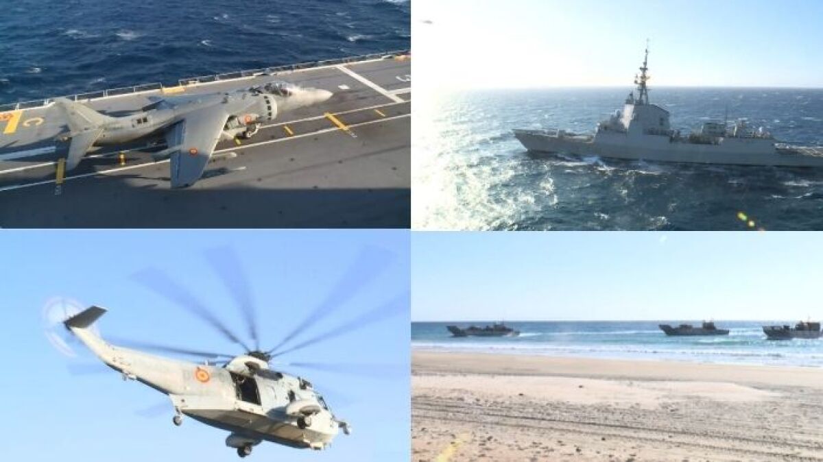 A esta recreación responde el movimiento que estos días se puede ver desde distintos puntos de la costa de Cádiz. Para la Armada la misión ficticia pasa a ser real en el momento en que ponen a trabajar a todas sus unidades. Grupo anfibio, infantería de marina, fragatas, cazaminas, aeronaves. Todos con un punto base, como cuenta el Capitán de Navío Vicente Rubio, “el Juan Carlos I es la caja de herramientas para ejecutar la misión”. Todo empieza y acaba en el portaviones de la Armada, y desde allí se coordinan las intervenciones.