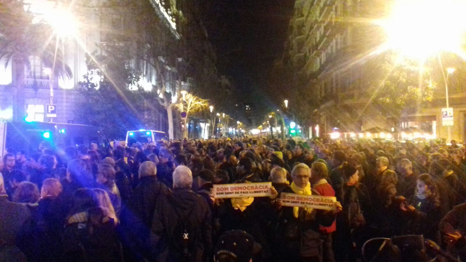 Los manifestantes han ocupado las calles de Mallorca y Roger de Llúria a la altura de la Delegación del Gobierno al grito de "Libertad presos políticos". "Las calles serán siempre nuestras", "1 de octubre, ni olvido ni perdón" o "Fuera las fuerzas de ocupación" han sido otros de los eslóganes coreados en la concentración, que también ha sido convocada frente a las sedes de las subdelegaciones del Gobierno en Tarragona, Lleida y Girona.